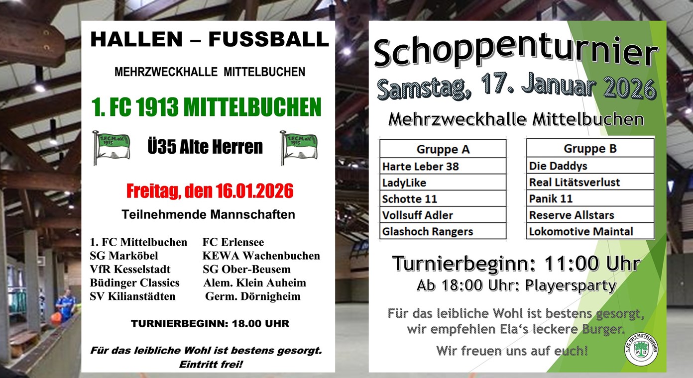 Hallenturniere am 16. und 17. Januar in der Mehrzweckhalle Mittelbuchen